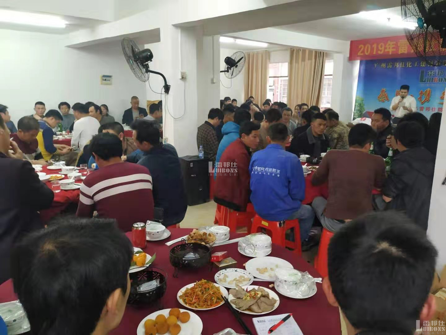 大家共同分享美酒與佳肴,每個人臉上都洋溢著幸福的笑容。現場場面令人火爆,也讓在坐的防水師傅們激情澎湃,同時雷邦仕對眾多的金牌泥水工師傅寄予2019年新的希望,并引起全體師傅的共鳴。